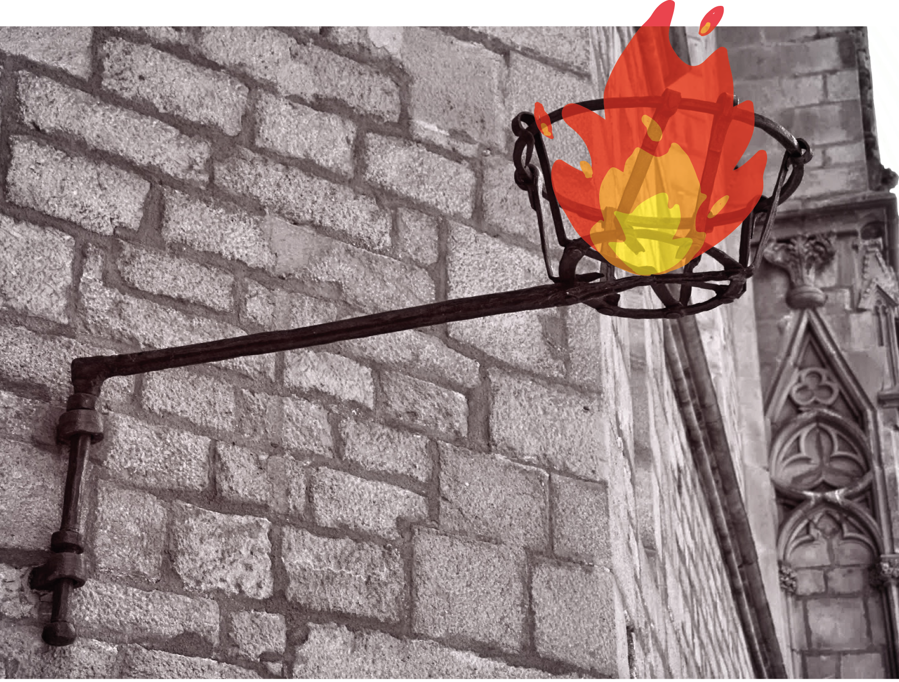 Te proponemos encontrar en esta pintoresca plaza, dos de las cinco únicas piezas originales del primer alumbrado público de Barcelona, los llamados tederos medievales.