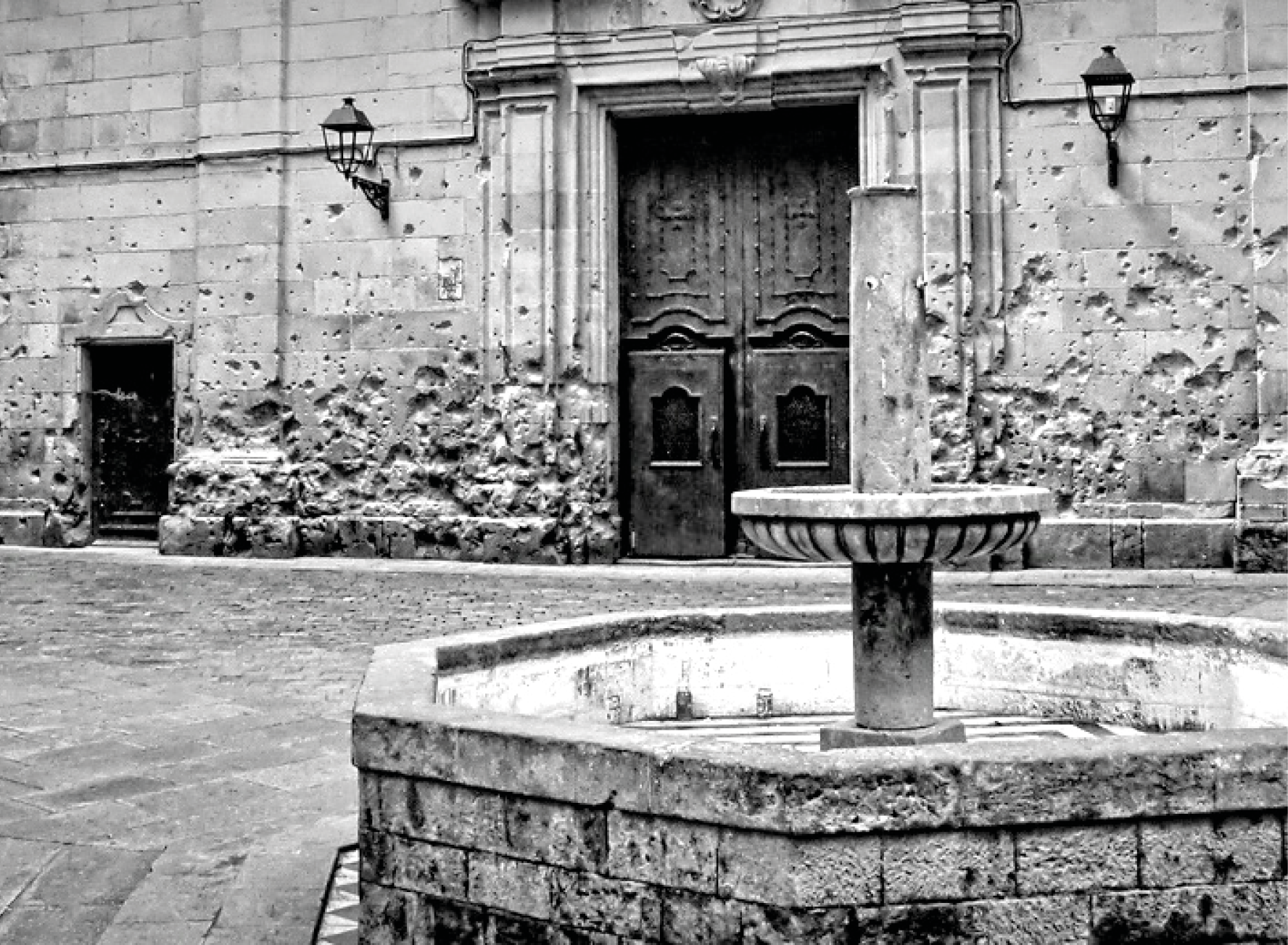 La mayor curiosidad de la plaza son las erosiones causadas por el bombardeo.