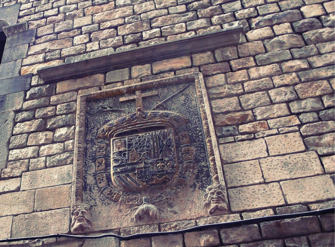 Incluso hoy en día, si nos fijamos en la fachada que da al carrer dels comptes, podemos ver el escudo de la Santa Inquisición.