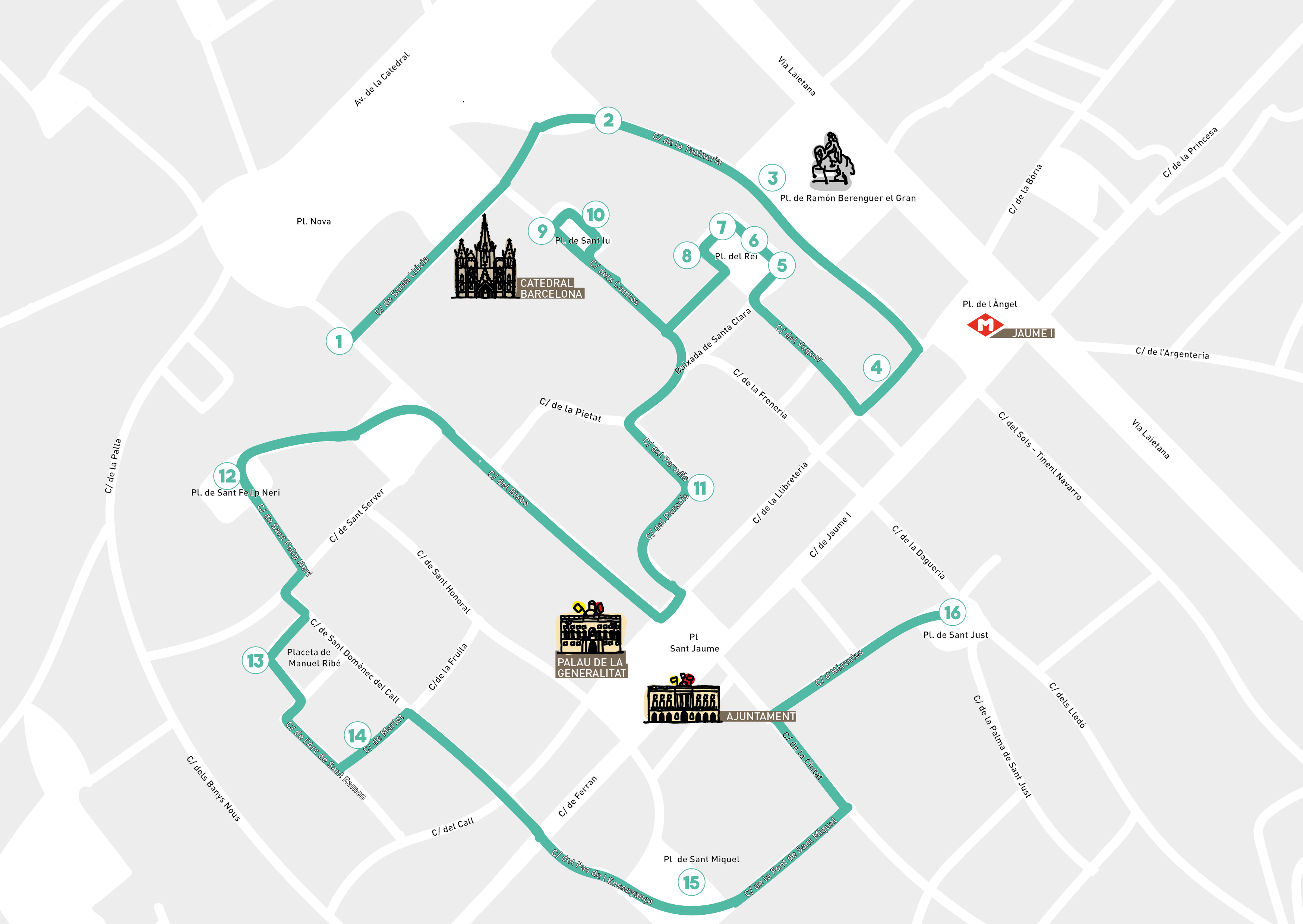 Acababa su jornada en esta pintoresca plaza, donde nosotros acabamos este impactante itinerario de la historia viva de Barcelona.