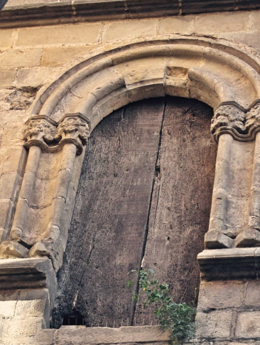 Para poder visualizar la siguiente curiosidad, deben sentarse en el banco de piedra de la plaza Sant Iu, una vez sentados, podrán observar la puerta de la fotografía en la parte izquierda de la catedral.